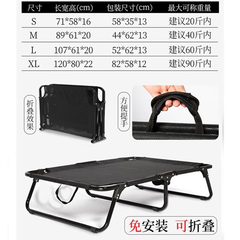 楚克奇(CHUKCHI)可折叠免安装狗狗行军床大中小型犬狗床狗窝宠物四季通用折叠床 宠物床(钢架 网布) XL长120*宽80*高22CM建议90斤