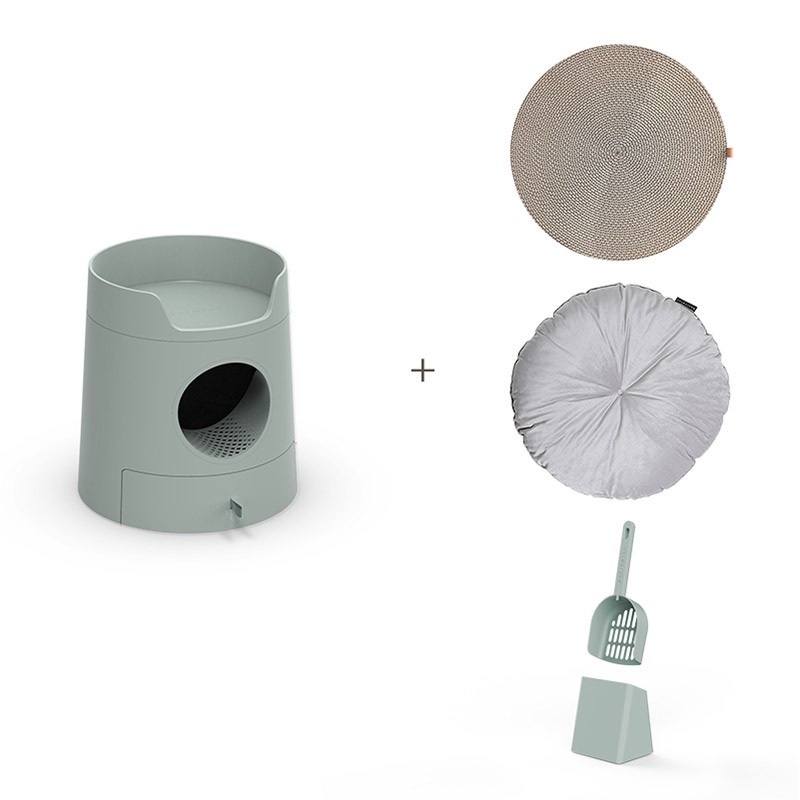 米尾猫城堡组合半封闭抽屉猫砂盆防臭猫厕所大号防漏砂 绿色套装 棉垫
