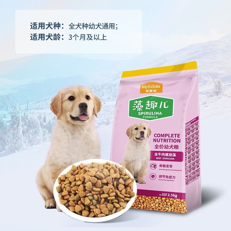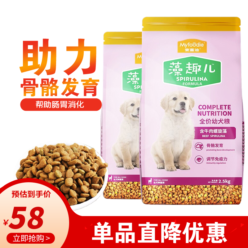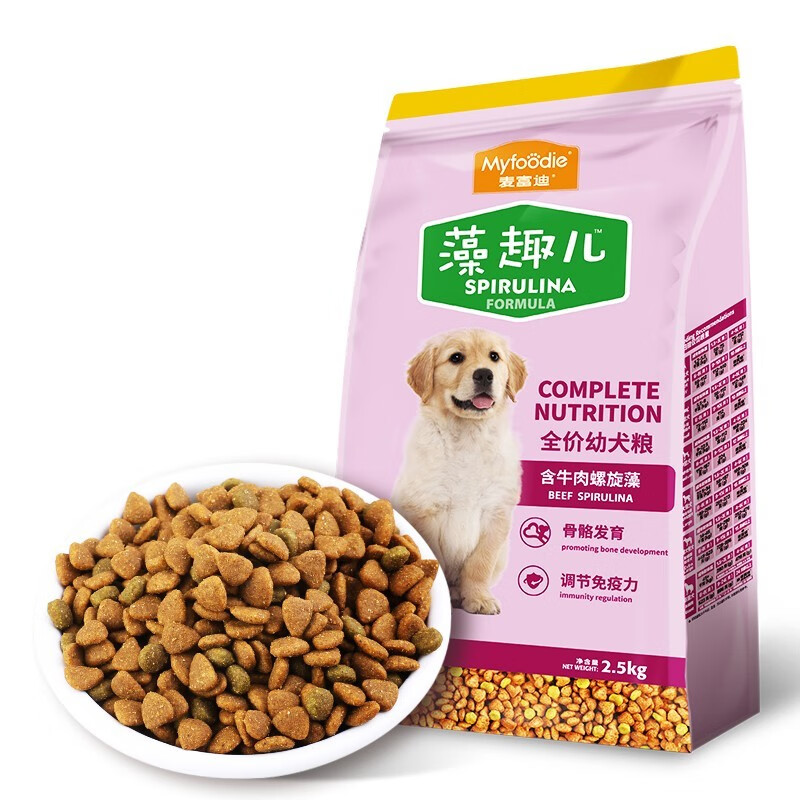 麦富迪藻趣儿狗粮 成犬幼犬狗粮 海藻牛肉味金毛哈士奇拉布拉多贵宾泰迪狗粮 藻趣儿幼犬粮 2.5kg*2袋