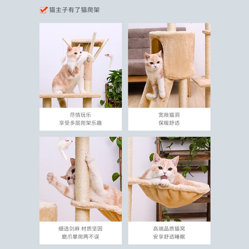 喵想树猫爬架大型猫树跳台一体豪华实木猫架子别墅猫窝不占地树洞 通天树