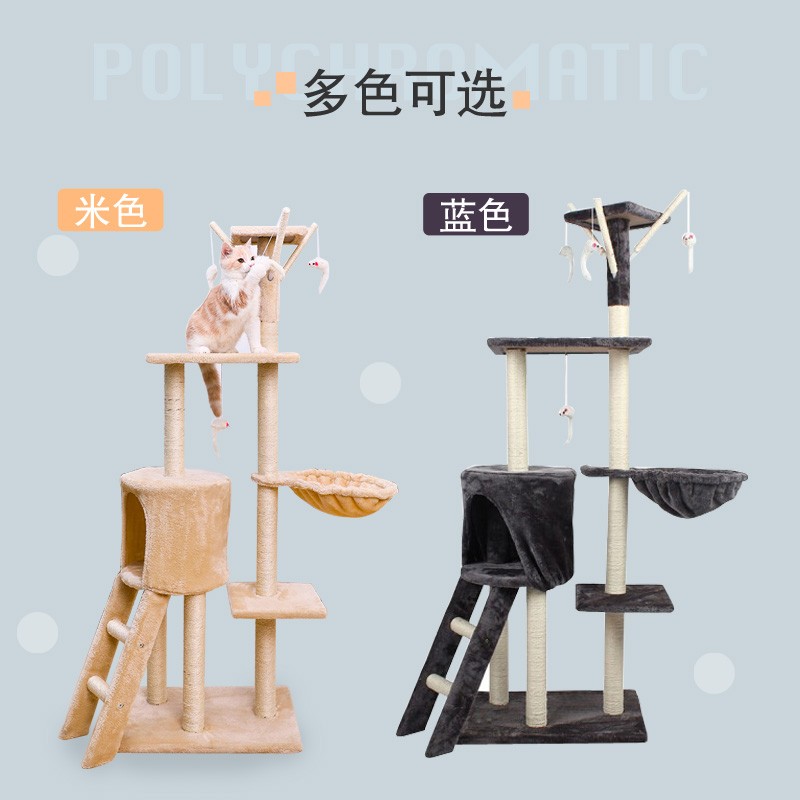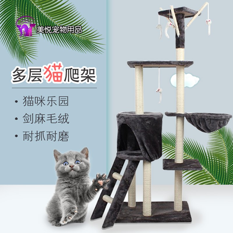 美悦宠物猫爬架猫窝猫树通天柱一体抓板多层跳台抓柱猫咪玩具剑麻窝具用品 1.38米蓝灰色多层猫爬架