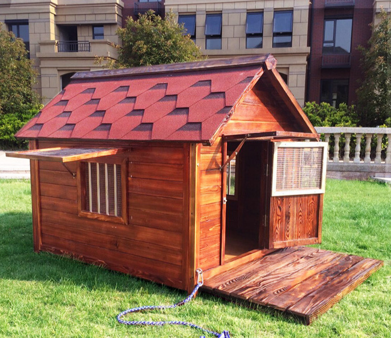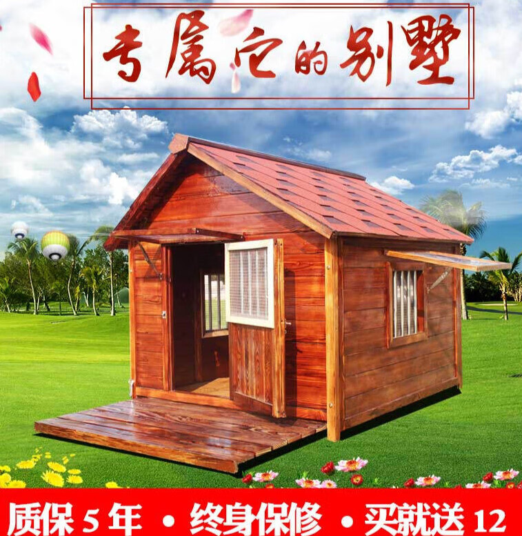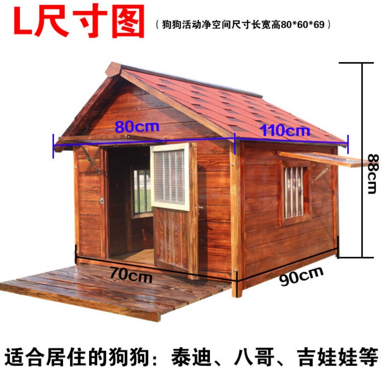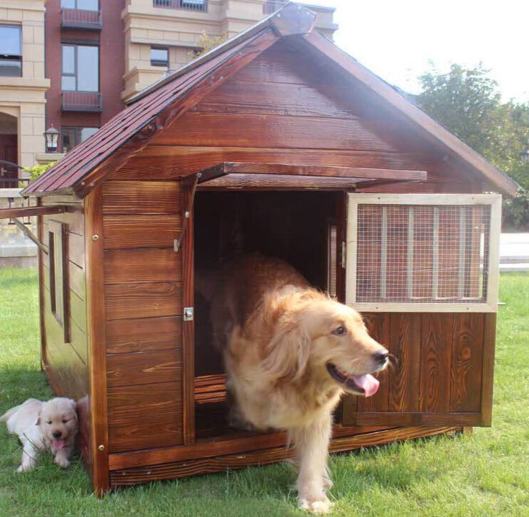 狗屋户外防水实木大型犬金毛狗窝防雨小中狗舍别墅冬季室外狗房子 L 标配-单窗 无纱网(不包安装)