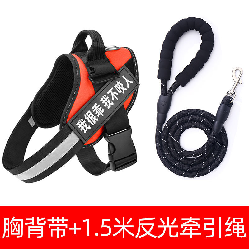 【工厂直发】狗狗牵引绳背心式遛狗绳子泰迪拉布拉多金毛小中大型犬宠物胸背带地狼 【橙色】 1.5米反光牵引绳 XS码【6-15斤可调节】