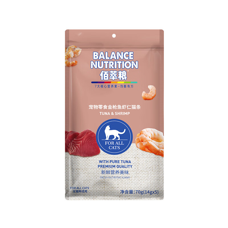 麦富迪(Myfoodie)亲嘴鱼猫条 猫湿粮秒鲜肉粒包流质补水增肥发腮成幼猫通用 佰萃粮金枪鱼虾仁猫条70g(14g*5)