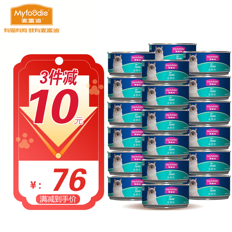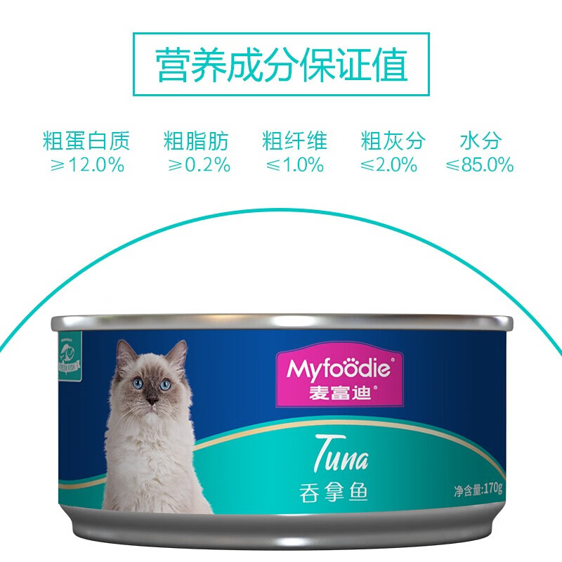 麦富迪猫罐头 猫粮猫湿粮肉粒包 鱼肉水煮高肉大罐头170g每罐 猫罐头(吞拿鱼)170g*24罐