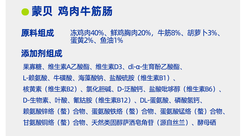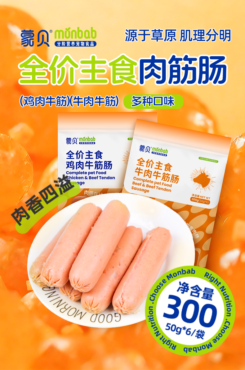 蒙贝 犬用全价主食牛筋肠鸡肉/牛肉口味300g