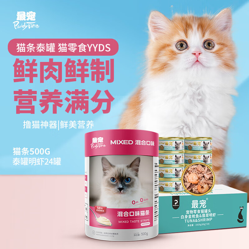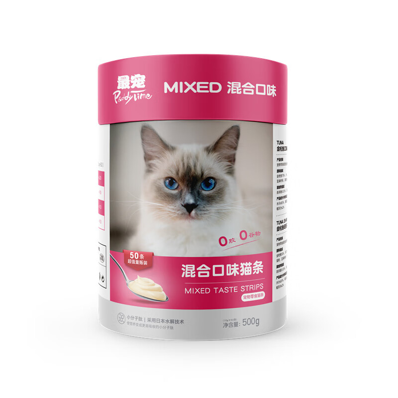 最宠(Paddy Time)猫零食 泰国进口猫罐头 混合猫条(实发泰罐24罐 猫条500g含附件)