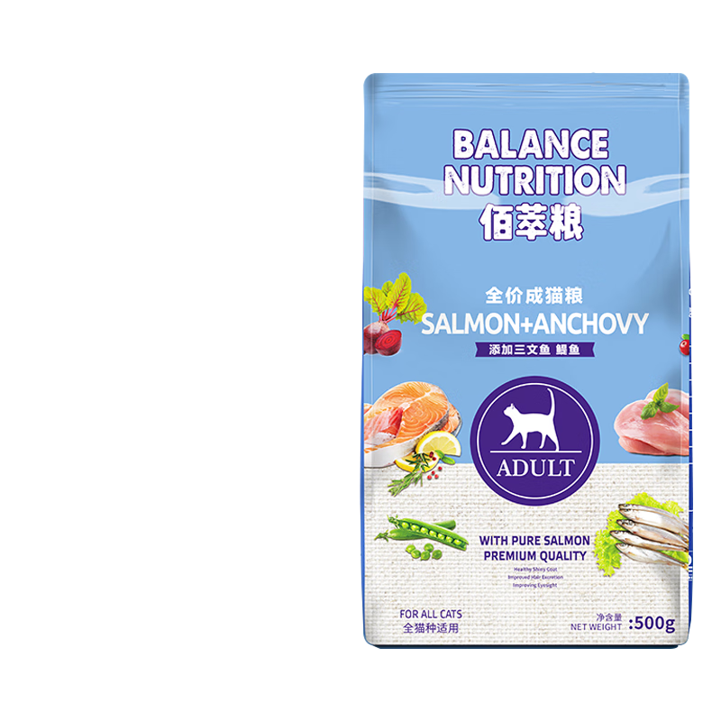 麦富迪佰萃猫粮 英短美短布偶折耳全通用天然粮三文鱼味添加蛋黄 鳀鱼成猫粮500g