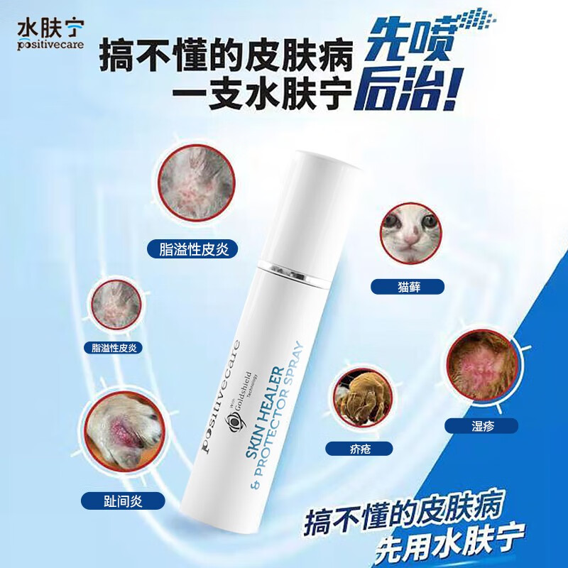 水肤宁(positivecare) 白色新系列宠物猫狗皮肤护理清洁喷雾15ml 美国原装进口 温和护理 猫狗通用