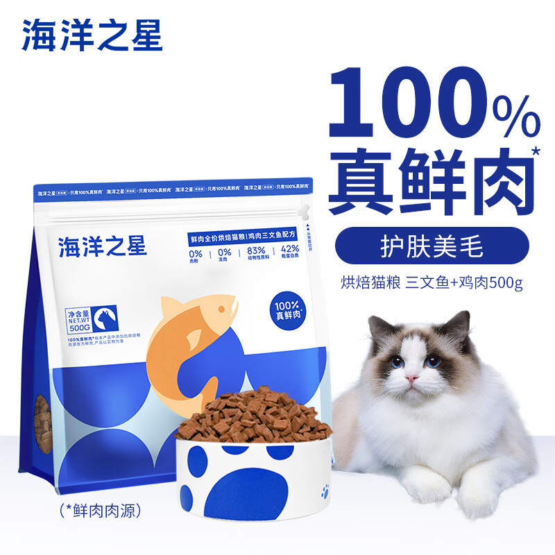 海洋之星(fish4dogs)宠物鲜肉低温烘焙猫干粮成猫幼猫全价猫粮50g 【尝鲜】鸡肉三文鱼烘焙猫粮500