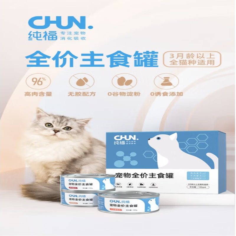 纯福(chunfu)全价猫主食罐湿粮幼猫成猫专用猫咪罐头主粮猫条猫粮 鸡肉味 600g单盒装共6罐