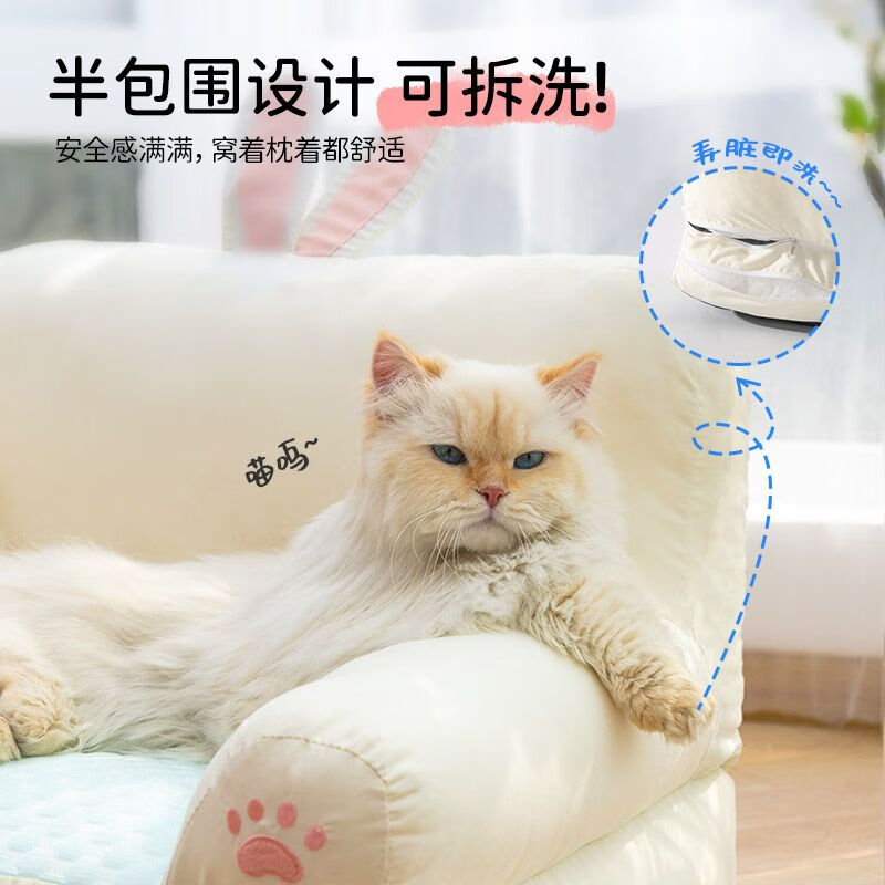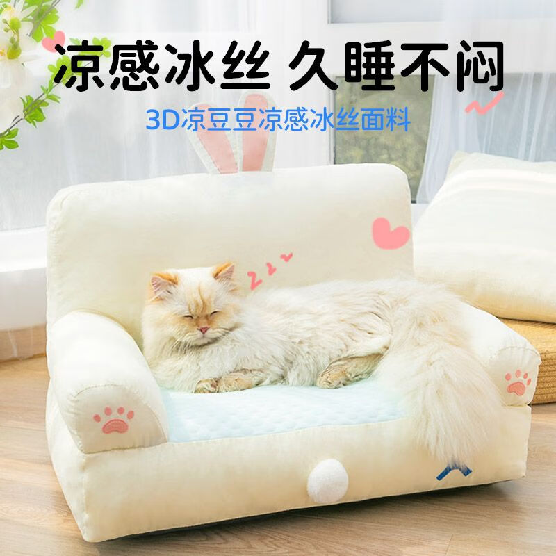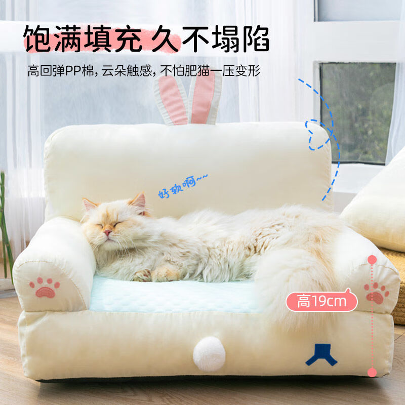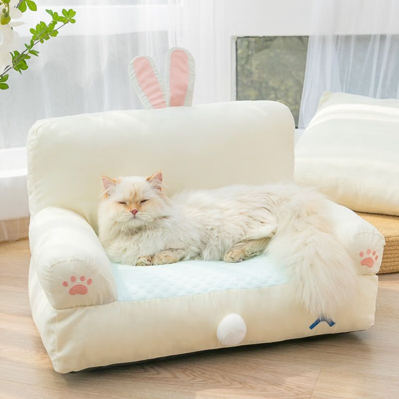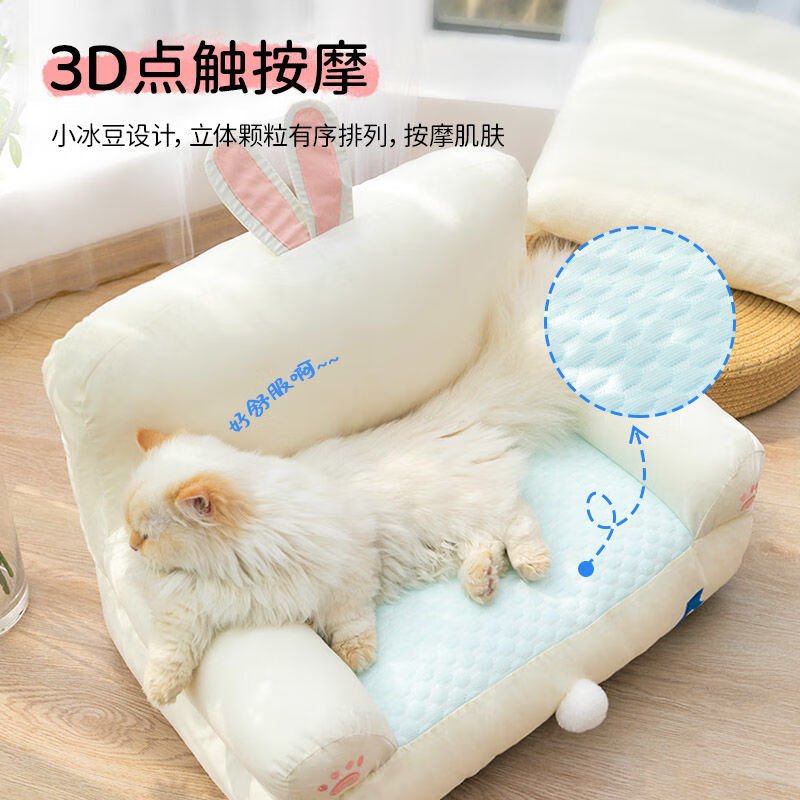 ABDT猫窝四季通用夏季猫咪沙发猫床宠物狗床夏天可拆洗小型犬狗窝凉席 可爱兔兔沙发(冰丝款) S小型46*36cm-8斤内