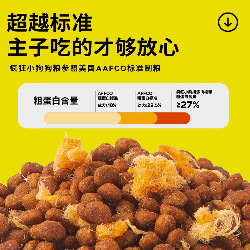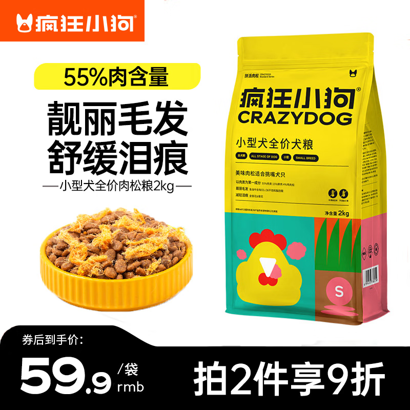 疯狂小狗 小型犬狗粮泰迪博美柯基成犬幼犬通用全价肉松粮 【55%肉含量】小型犬拼派肉松2kg 全犬期