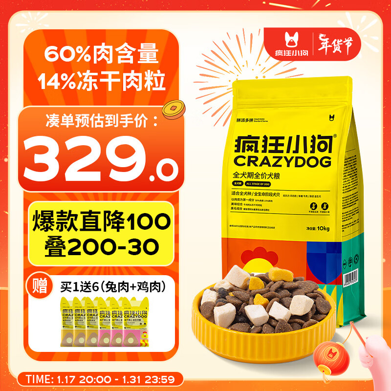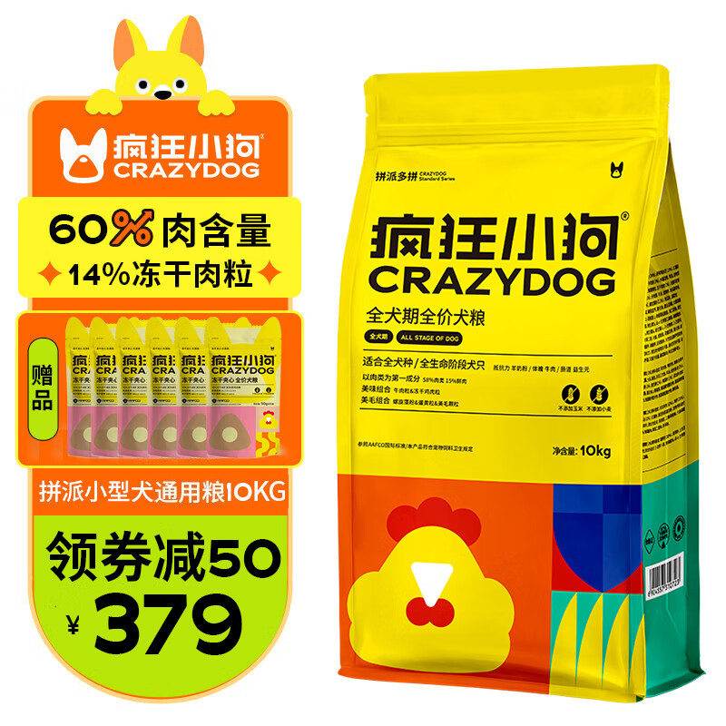 疯狂小狗 幼犬成犬狗粮 宠物全犬期全价犬10kg 拼派多拼系列