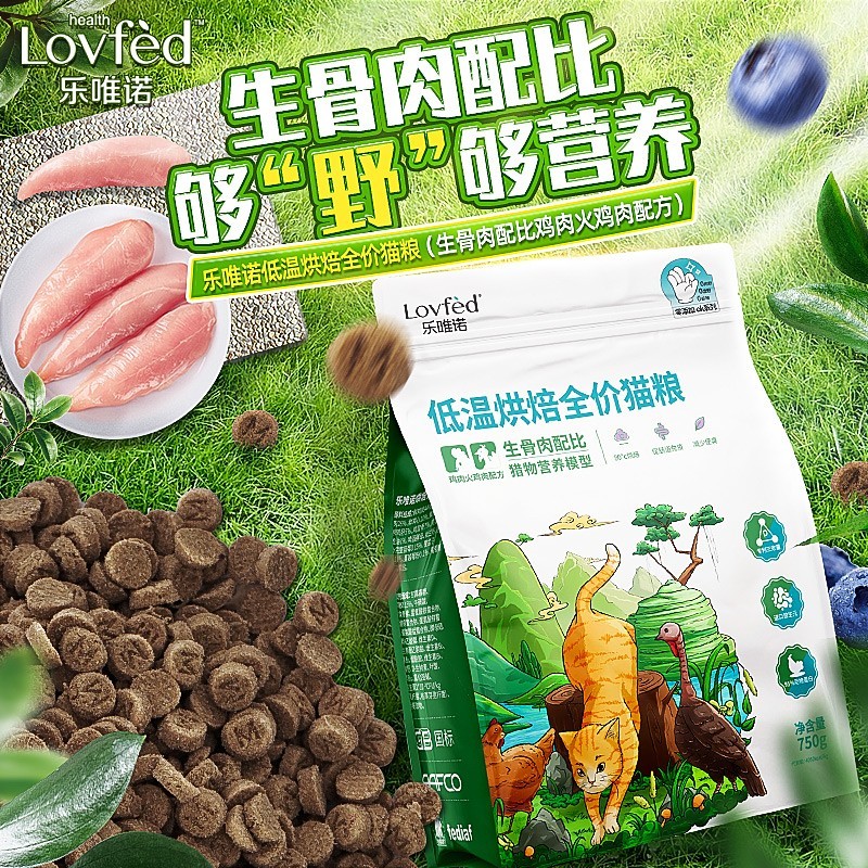 乐唯诺乐唯诺低温烘焙猫粮全价高蛋白鸡肉三文鱼成猫幼猫生骨肉 鸡肉三文鱼1kg 鸡肉火鸡肉750g