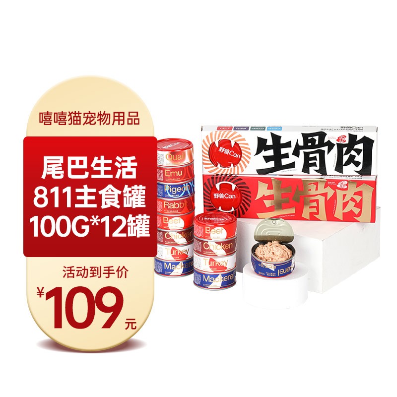FURRYTAIL尾巴生活811主食罐猫咪全价生骨肉主食罐湿粮包猫粮猫罐头猫罐头 100g*12罐(火鸡/鸡肉/牛肉/马鲛鱼)