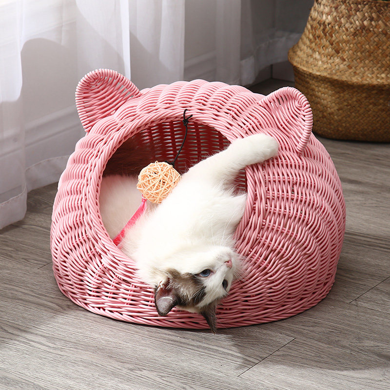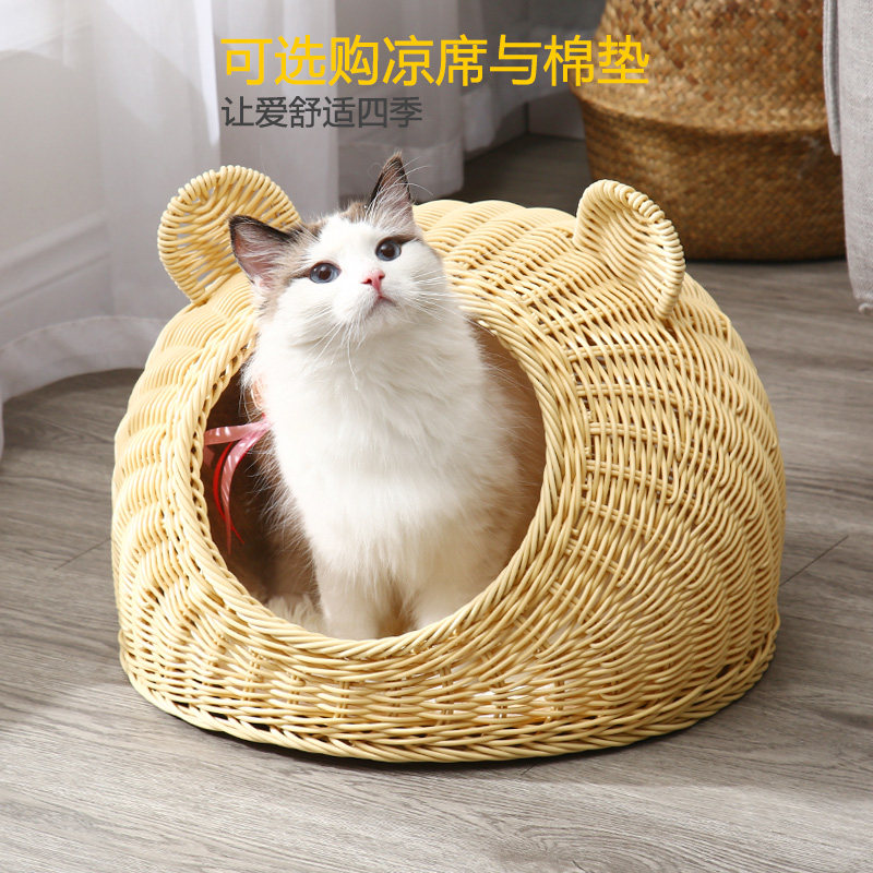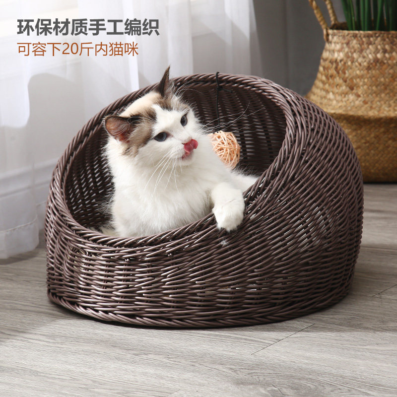 藤编猫窝夏季凉窝夏天夏日猫床用品猫咪窝凉席四季通用大号猫房子