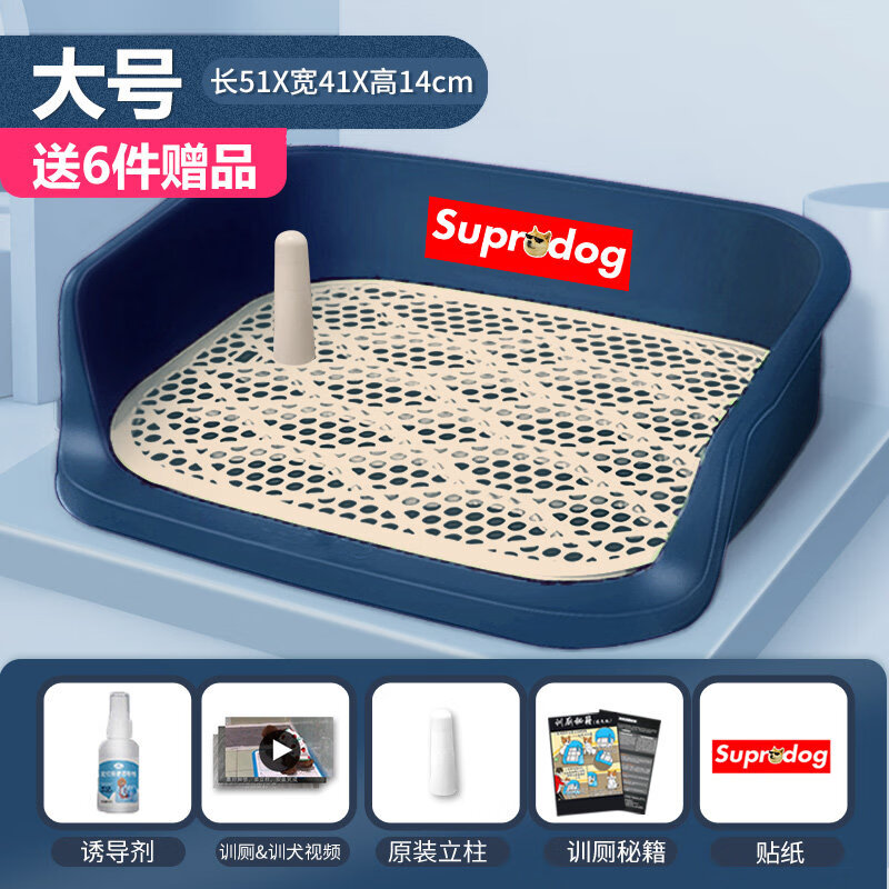 爱丽思防踩屎狗厕所接尿托盘小型犬大型犬不湿脚自动狗狗用品防踩屎便尿盆大号宠物冲水 加厚新大号宝蓝[标配]