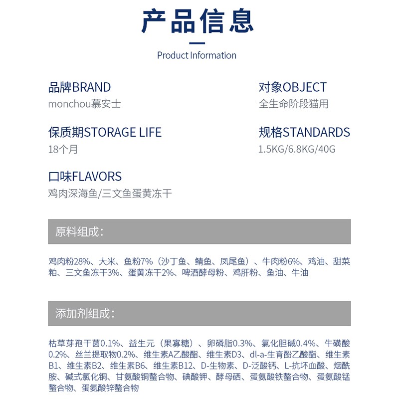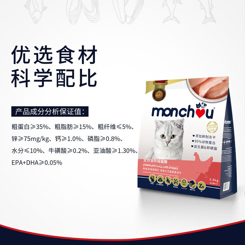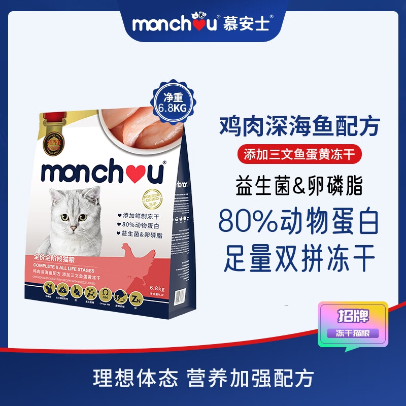 慕安士monchou泰国品牌幼猫成猫猫咪食品鸡肉深海鱼配方冻干猫粮6.8kg