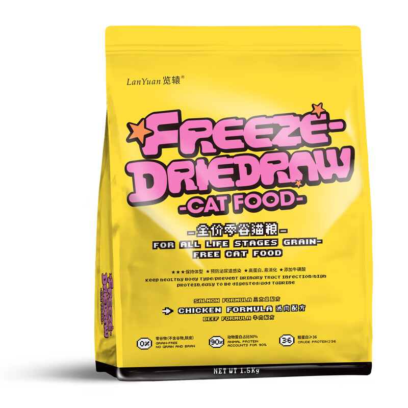 览辕览辕猫粮三文鱼鸡肉牛肉羊肉7.5KG览猿怀石双拼冻干肉松粮1.5KG 鸡肉 1.5kg