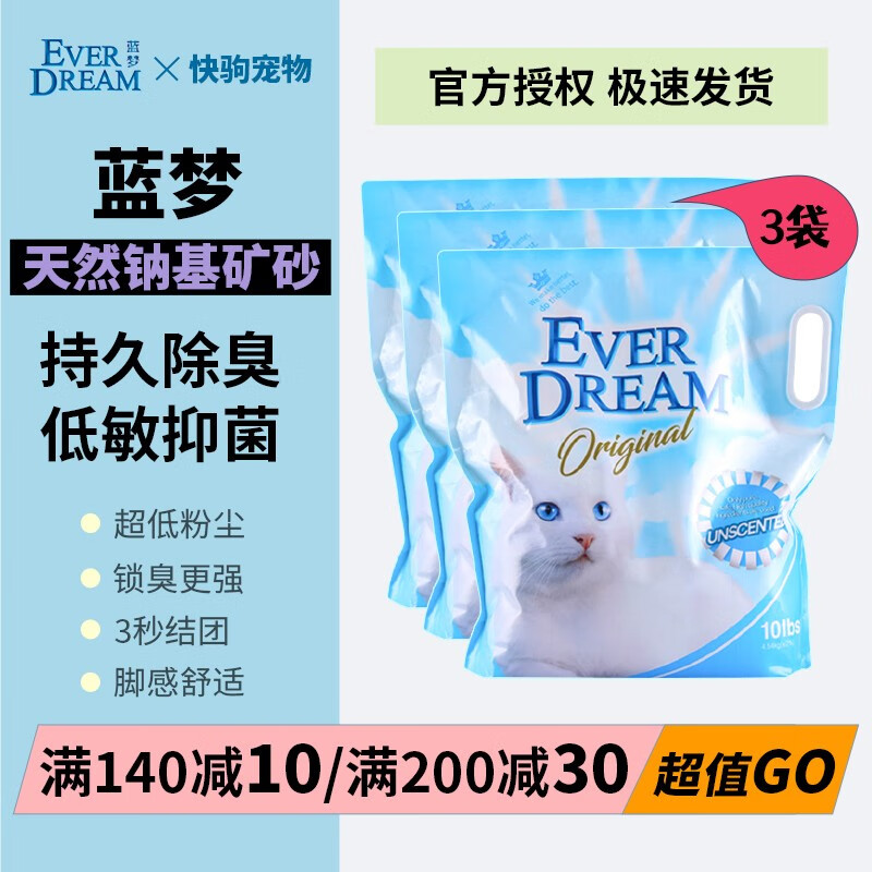 蓝梦(EVER DREAM)蓝梦猫砂天然钠基矿砂everdream抑菌活性炭除臭膨润土猫咪 10磅袋补充装*3袋