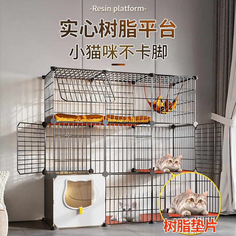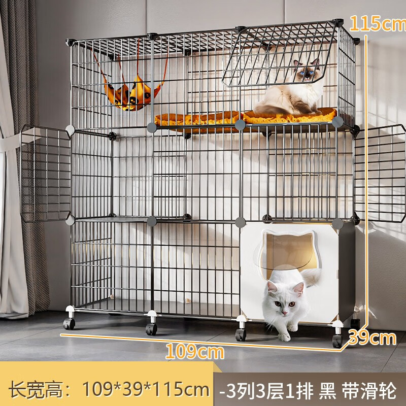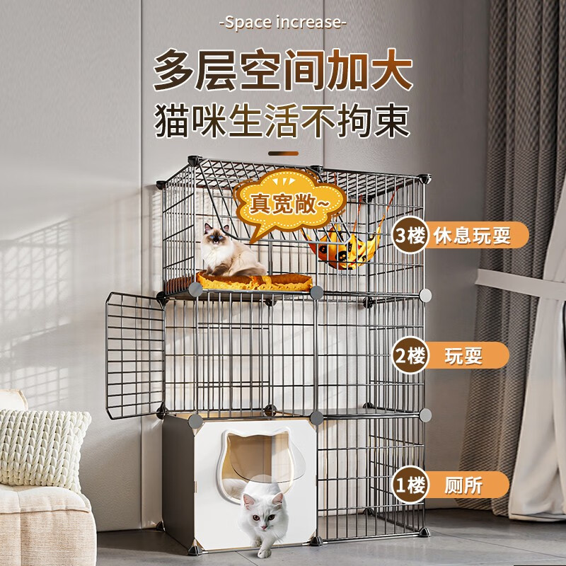 蔻丝猫笼子超大号家用室内猫咪别墅带厕所一体幼猫猫舍屋猫窝宠物猫笼 带滑轮【超大3层 101*39*115】 至尊款【猫砂盆带铲 碗 瞄舍款】
