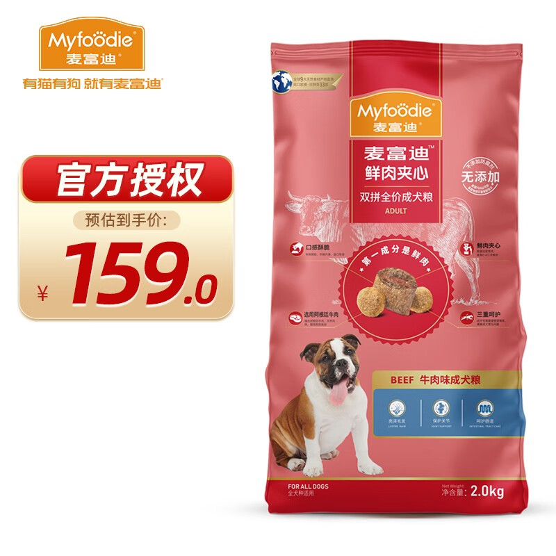 麦富迪 狗粮 哈士奇泰迪通用牛肉双拼鲜肉夹心狗粮 阿根廷牛肉夹心成犬粮10kg