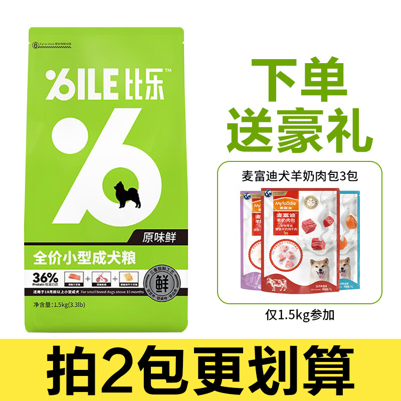 比乐狗粮原味低敏无谷试吃装小狗成犬幼犬泰迪贵宾比熊通用 小型成犬【拍2包立减】99%人选 1.5kg原封包装