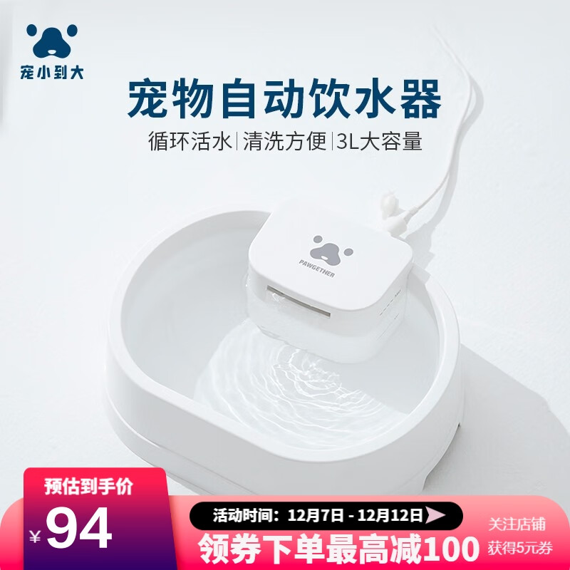 宠小到大宠物饮水机活水循环自动推浮毛大容量猫水盆狗狗智能喝水器 p100经典白(1.5L)