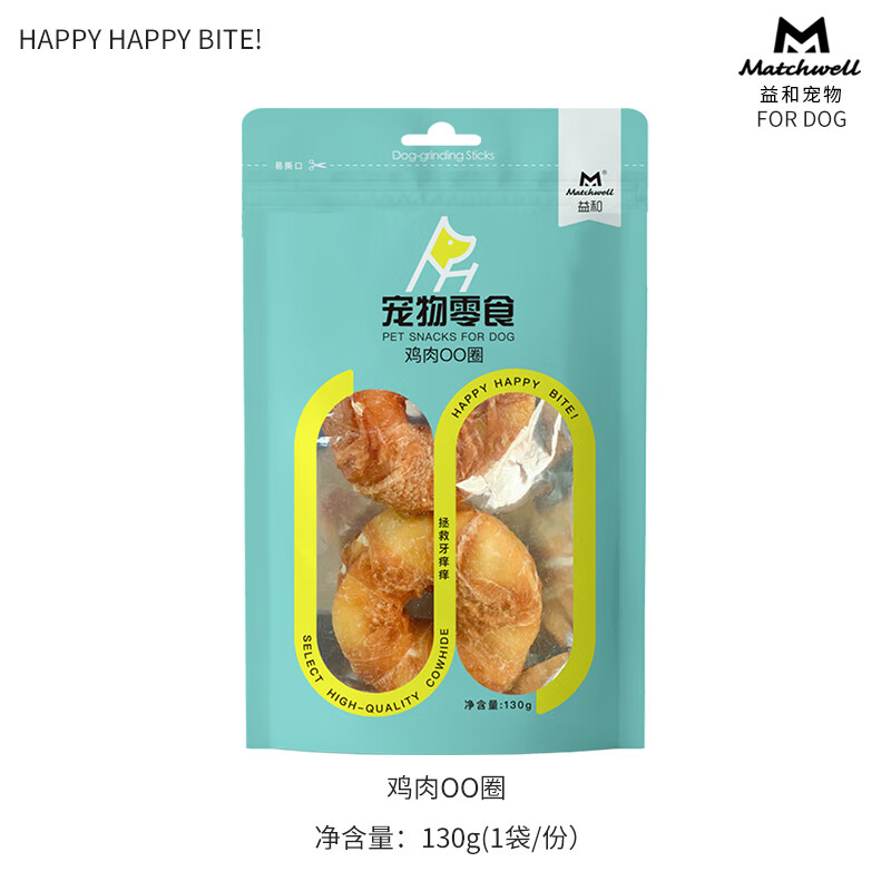 益和狗磨牙棒鸡肉牛皮圈中小型犬宠物零食幼犬泰迪金毛甜甜圈耐咬 磨牙OO圈130g【2个装/直径约9cm/ 1包
