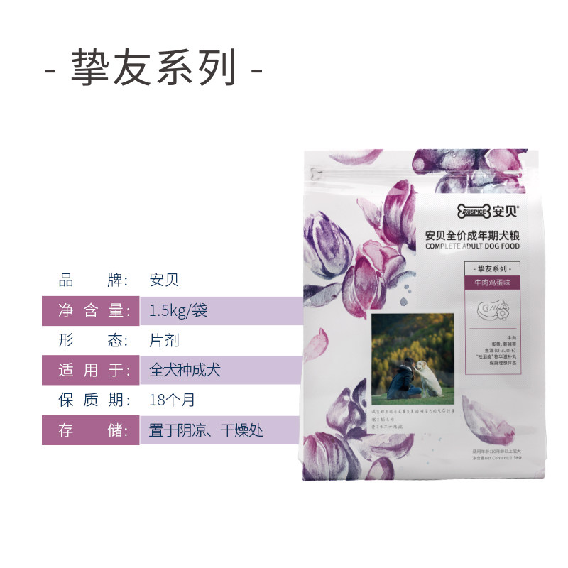 安贝挚友系列 牛肉蛋黄味成犬粮泰迪金毛成犬全价通用型狗粮1.5kg