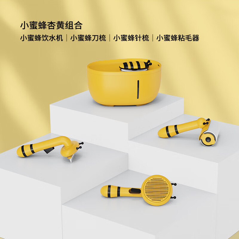 OIMG小蜜蜂宠物猫咪饮水机恒温加热自动循环流动静音狗喂水喝水器水碗 小蜜蜂全系组合-黄色 小蜜蜂饮水