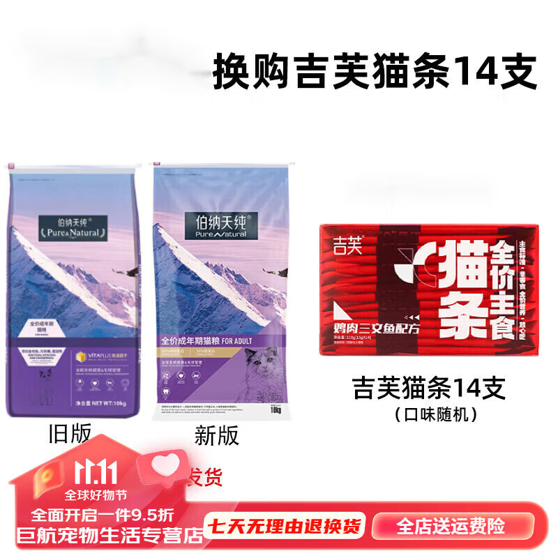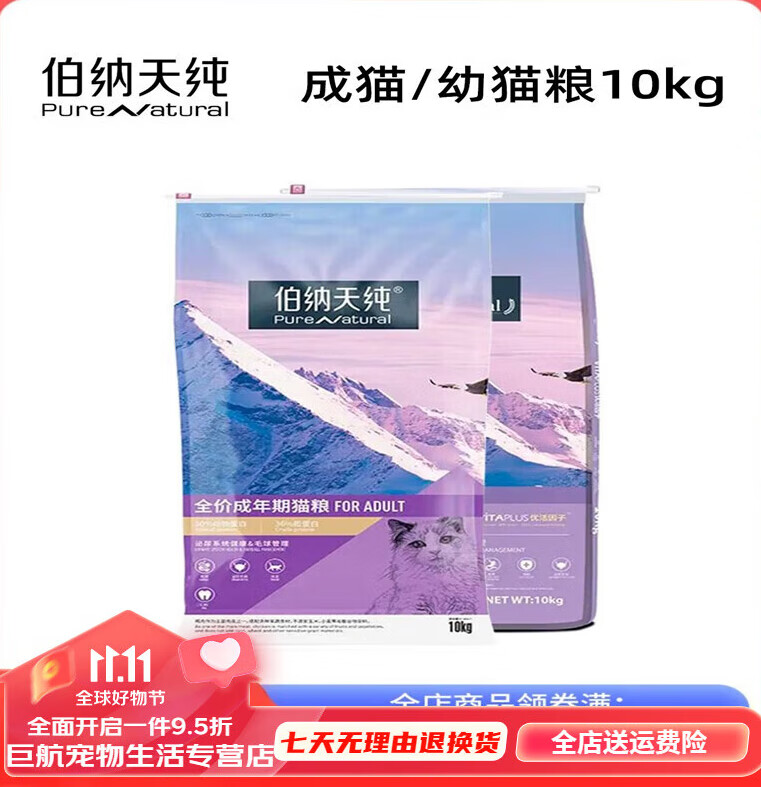 凛东伯纳天纯猫粮10kg成幼猫通用天然粮营养增肥发腮猫主粮干粮20斤 成猫粮10kg 14支主食猫条- 0kg
