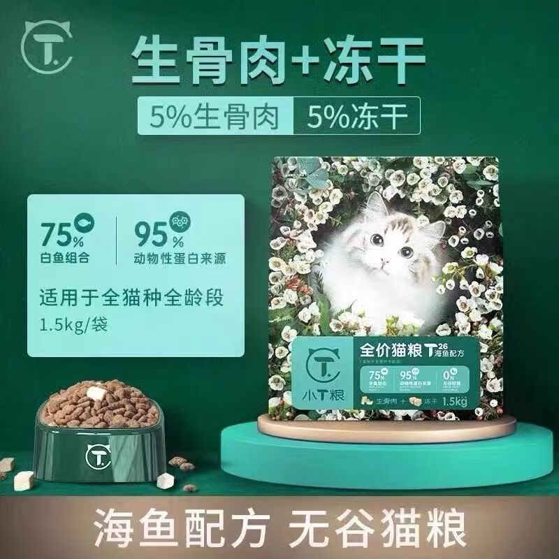 小T小T粮冻干生骨肉全价成猫幼猫T22鸡肉T26海鱼T29白肉发腮美毛 T22鸡肉配方1.5kg【无谷低敏】 1袋