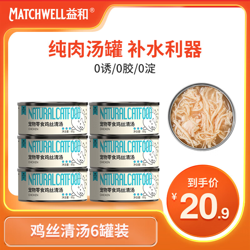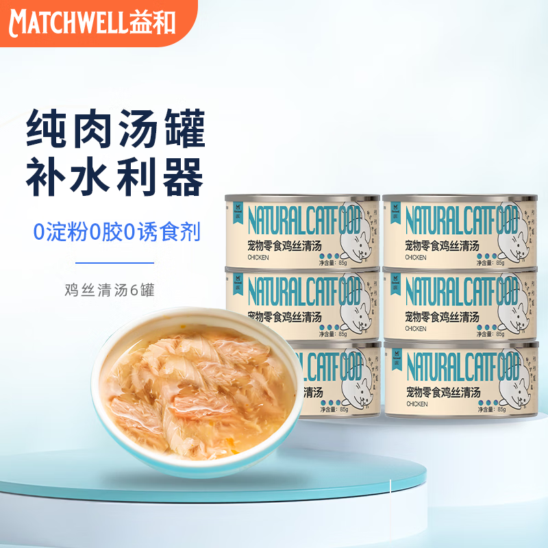 益和(MATCHWELL)猫零食幼猫罐头主食罐成猫咪零食湿粮包猫条补水营养增肥整箱 鸡丝清汤 24罐