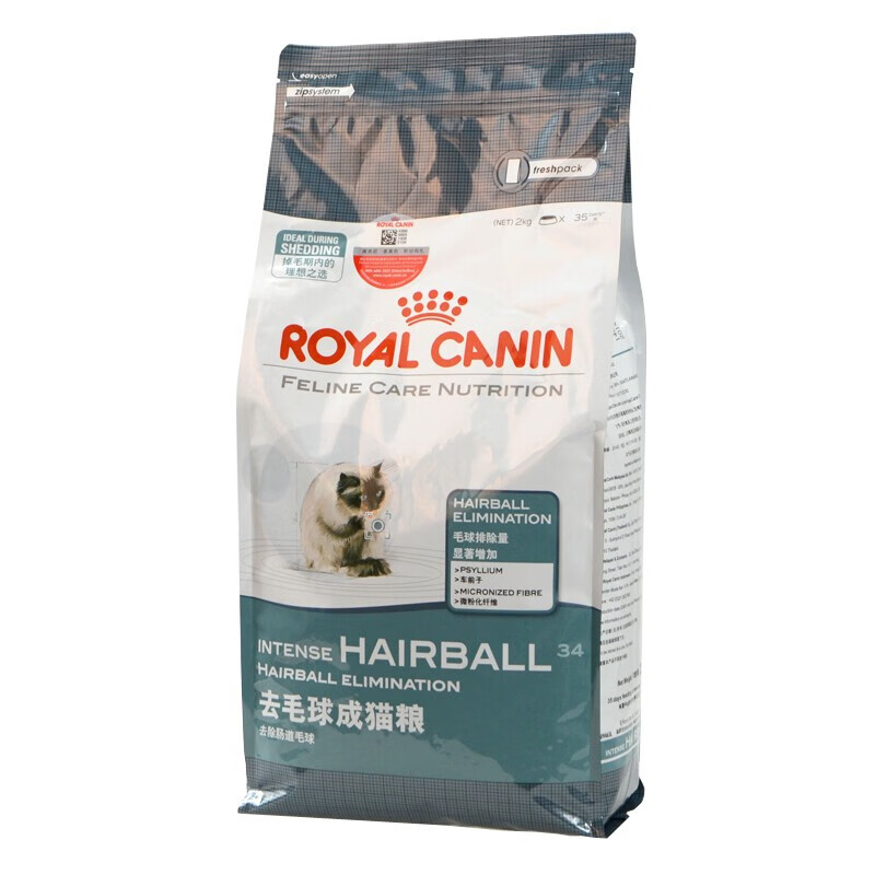 皇家猫粮IH34控制毛球成猫粮促进毛球排出 IH34控制毛球成猫粮2kg 每日猫条20支