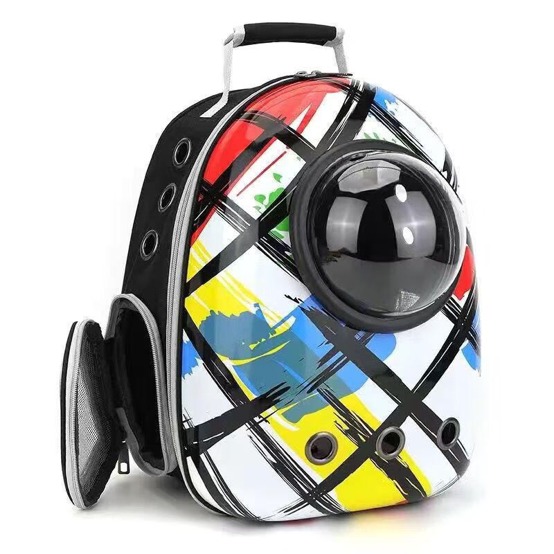 【猫包优选 都是好货】猫包太空舱宠物包狗狗背包透明包外出便携双肩猫用品书包猫咪背包 红搭白-12孔 【标准四件套】