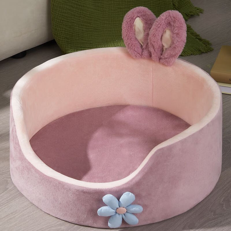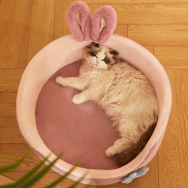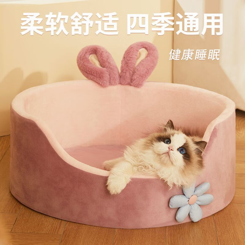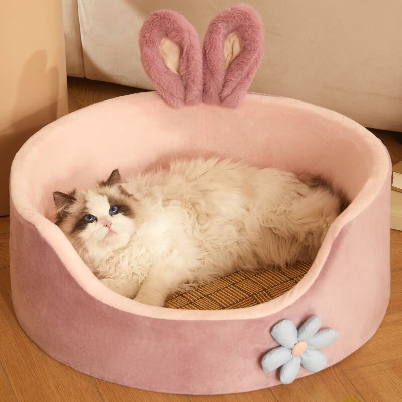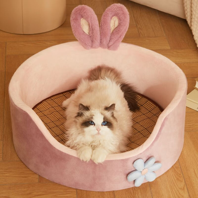优贝卡宠物猫窝夏天四季通用网红猫咪窝床别墅房子非可拆洗狗窝垫子宠物用品 粉色小兔 中号-10斤内猫狗通用
