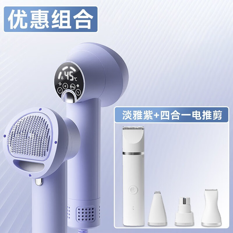 嬉皮狗(hipidog)宠物吹风机拉毛一体狗狗吹毛神器猫咪梳毛速干泰迪洗澡小型犬专用 【淡雅紫】吹梳机 四合一电推剪