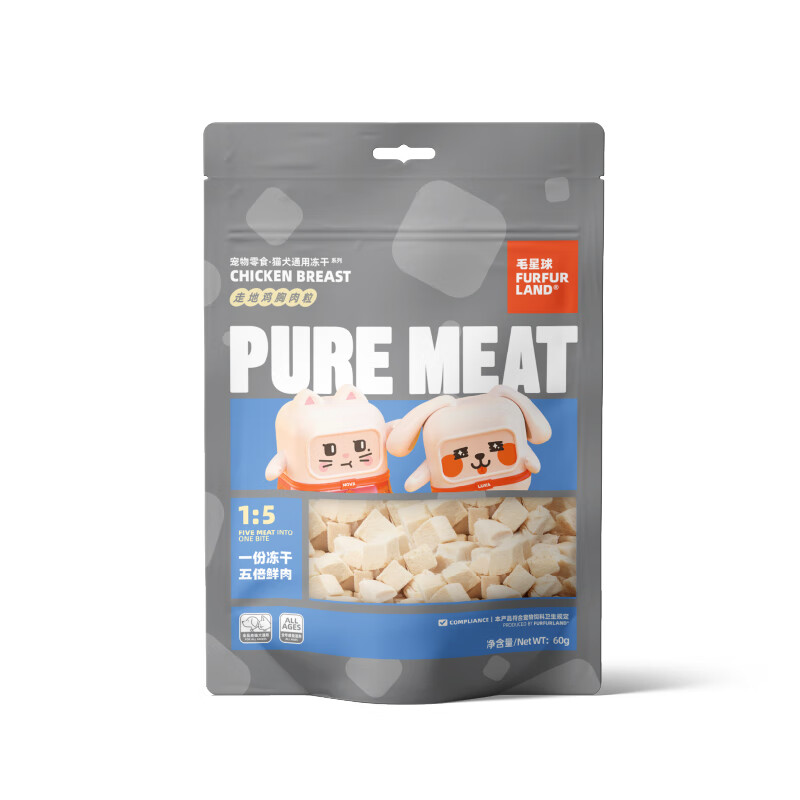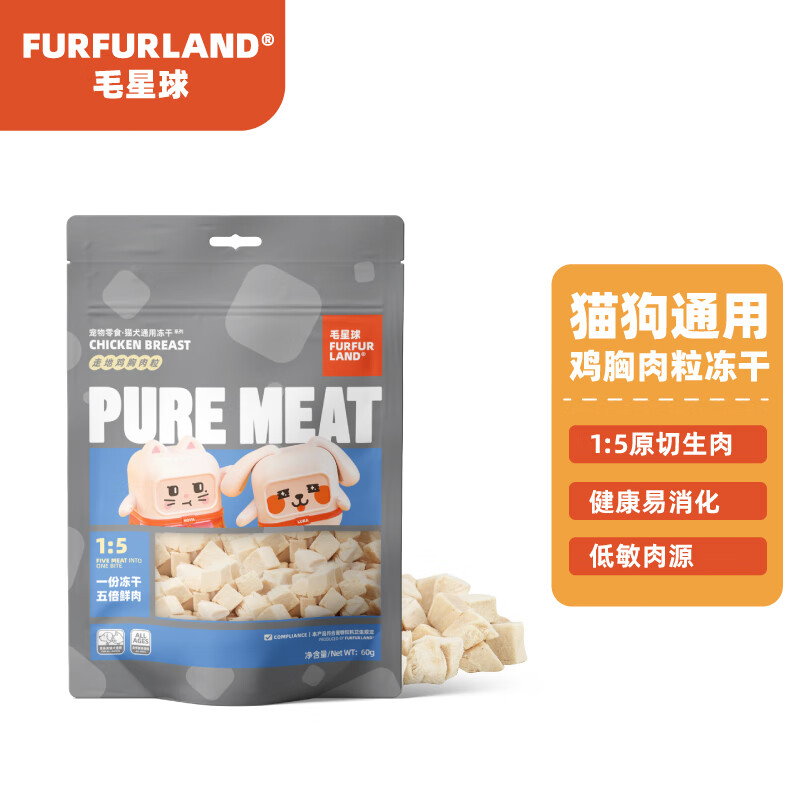 毛星球(FurFur Land)冻干猫零食犬猫通用宠物零食训练奖励鸡肉颗粒鸭肉丁多春鱼小鱼干 鸡胸肉小粒60g