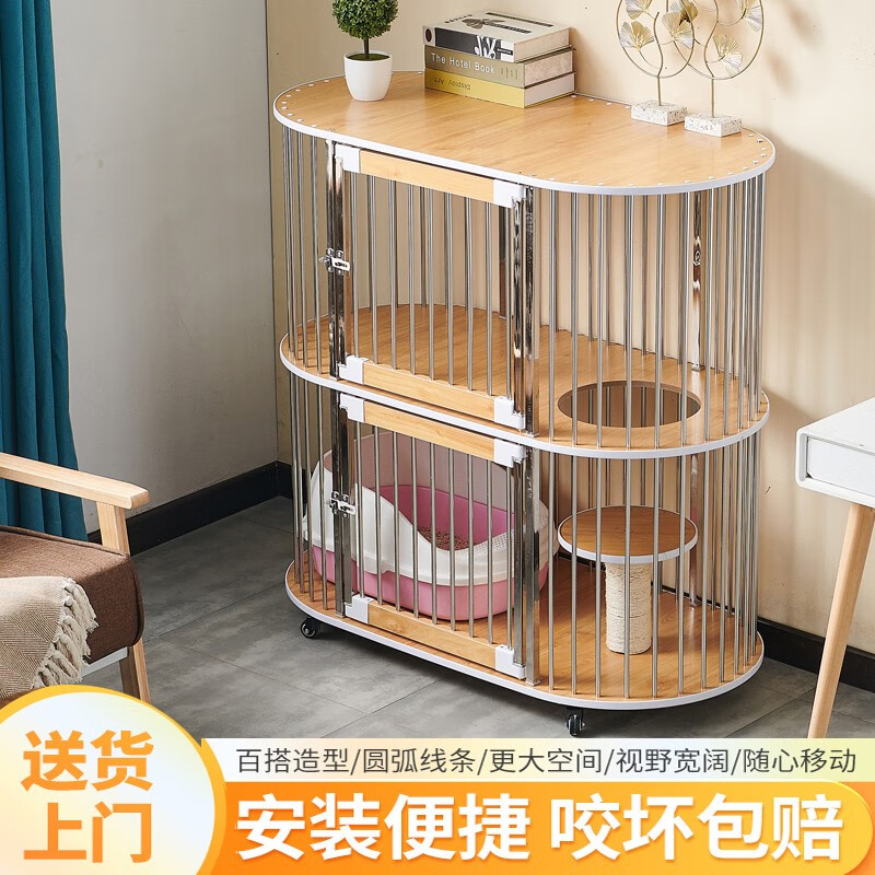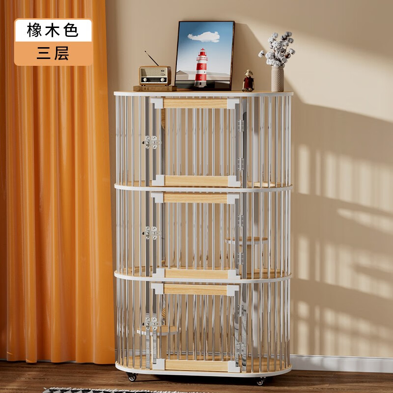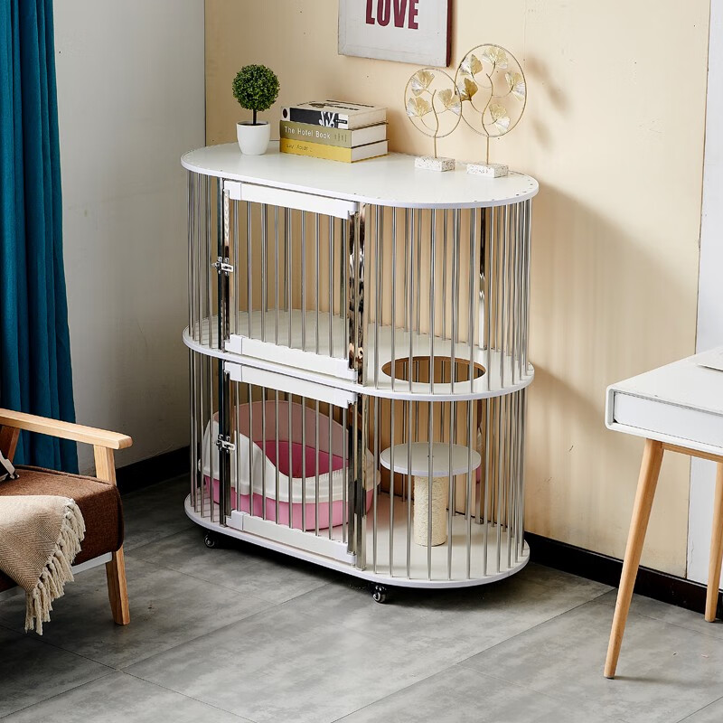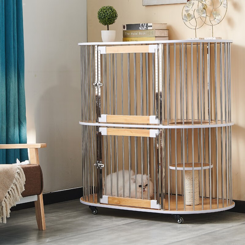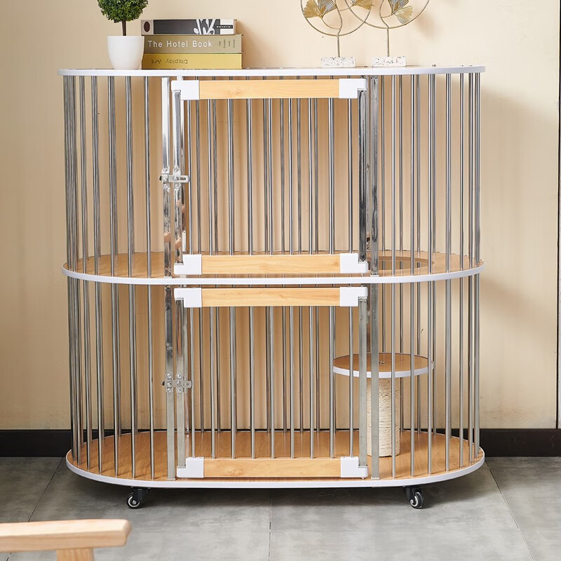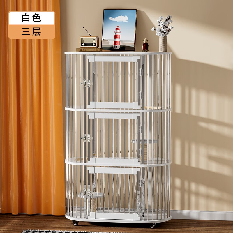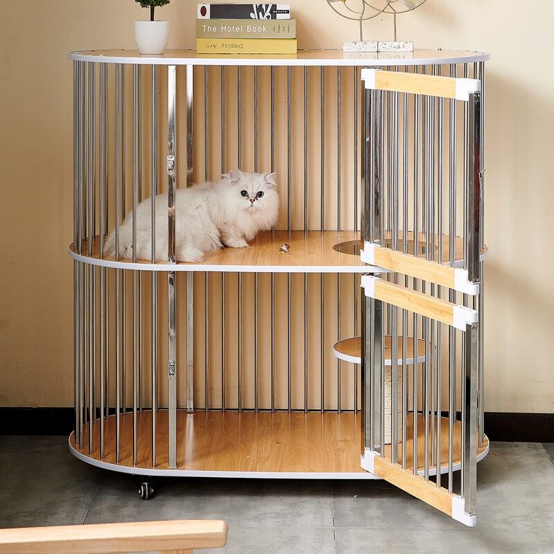 乖乐宝实木猫笼子不锈钢猫别墅猫咪房子猫屋猫舍猫窝双层三层超大空间家用室内猫笼猫围栏 白色(长112宽56高162厘米) 通用型
