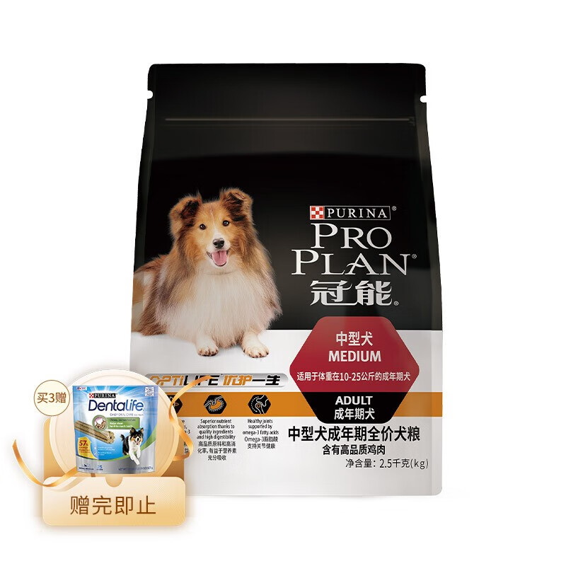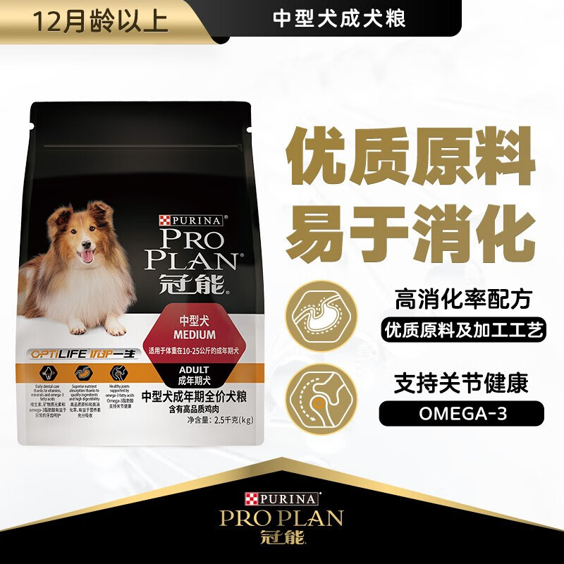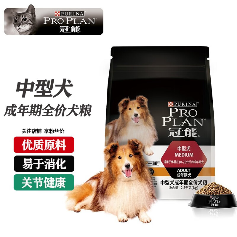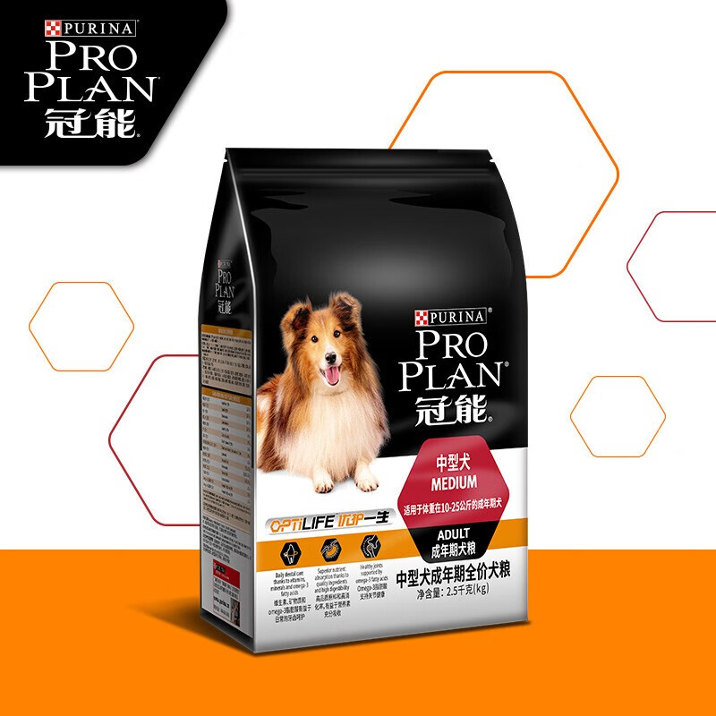 冠能(PRO PLAN)狗粮 中型犬 成犬幼犬狗粮 高消化吸收 呵护牙齿关节 成犬粮 2.5kg