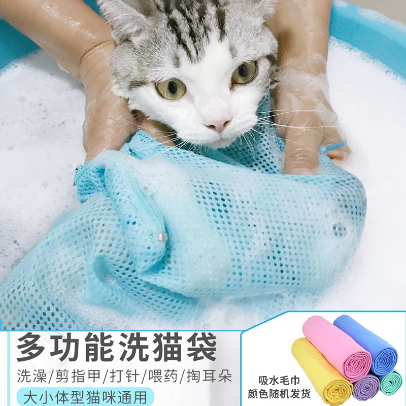 新宠之康猫咪洗澡神器指甲套猫爪鞋洗猫袋防抓伤挠咬宠物洗澡猫脚套爪子用品 洗猫袋 吸水毛巾
