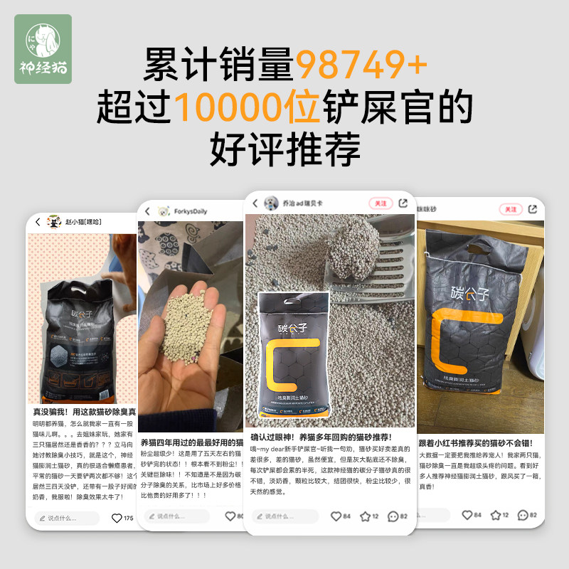 碳分子膨润土猫砂长效除臭低尘活性炭混合砂10kg/包猫咪清洁用品