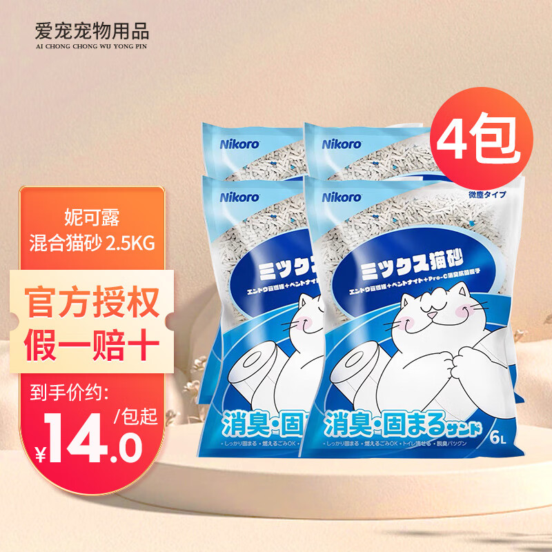 妮可露猫砂 5斤混合猫砂豆腐猫砂除臭抑菌无尘易结团可冲马桶猫沙豆腐砂 【原味款】混合猫砂 5斤*4包