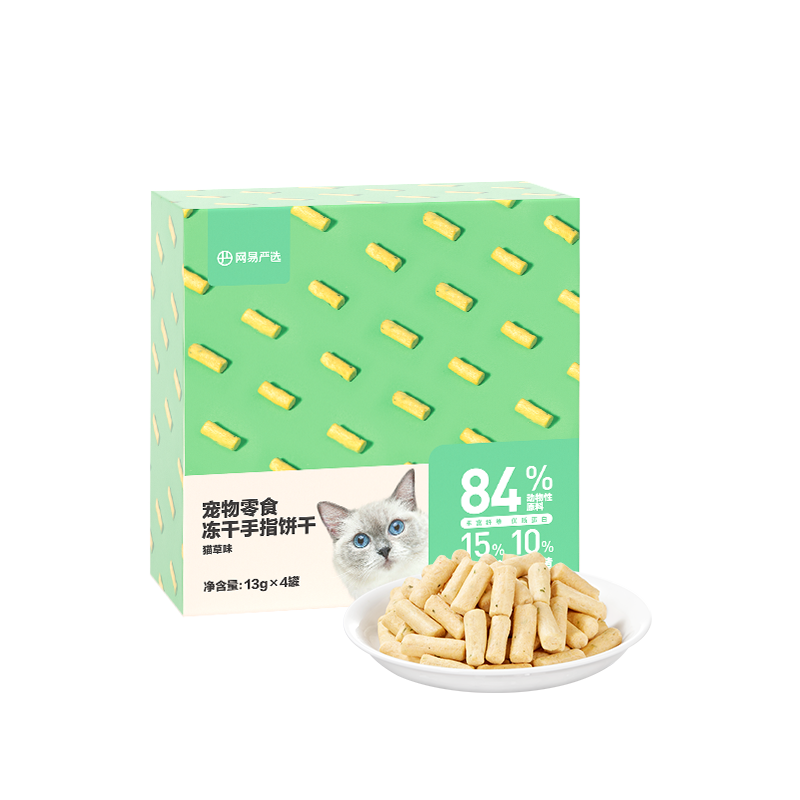网易严选 冻干猫草手指饼干 鸡肉冻干零食 3大营养素促排毛美毛猫零食 开盖即食 猫草手指饼干 52g