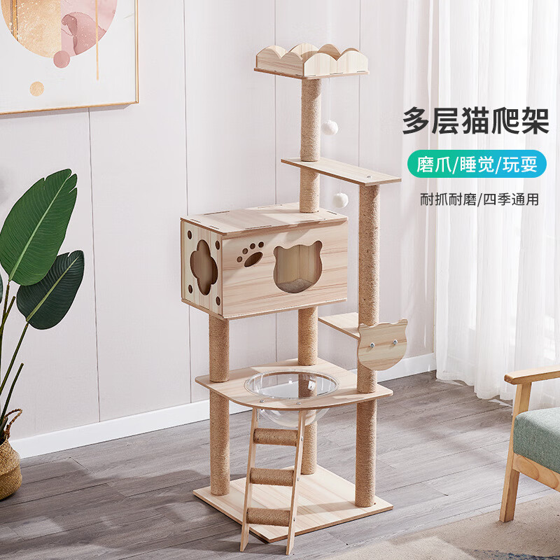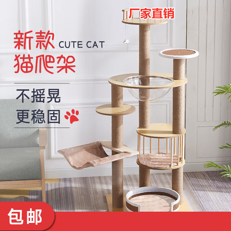 松木头猫咪爬树柱子实木 超大带滑梯玩具架三只猫夏季猫爬架 豪华款C01(PVC加固立柱)