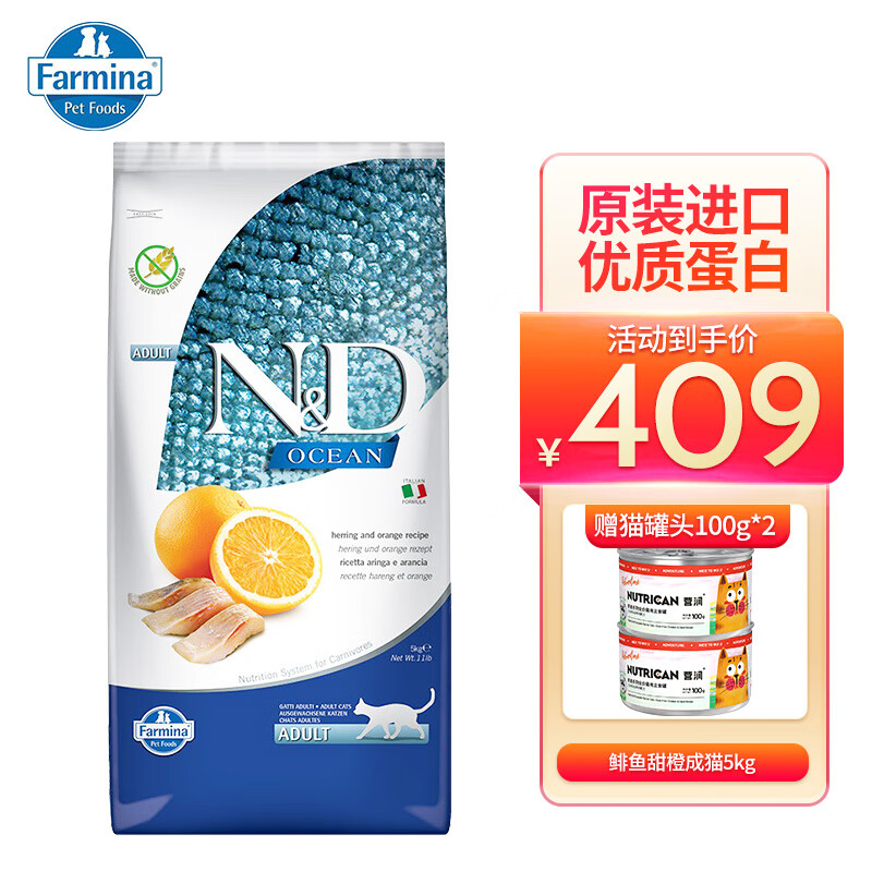 法米娜(farmina)猫粮原装进口猫粮无谷高蛋白猫粮 鲱鱼甜橙成猫5kg