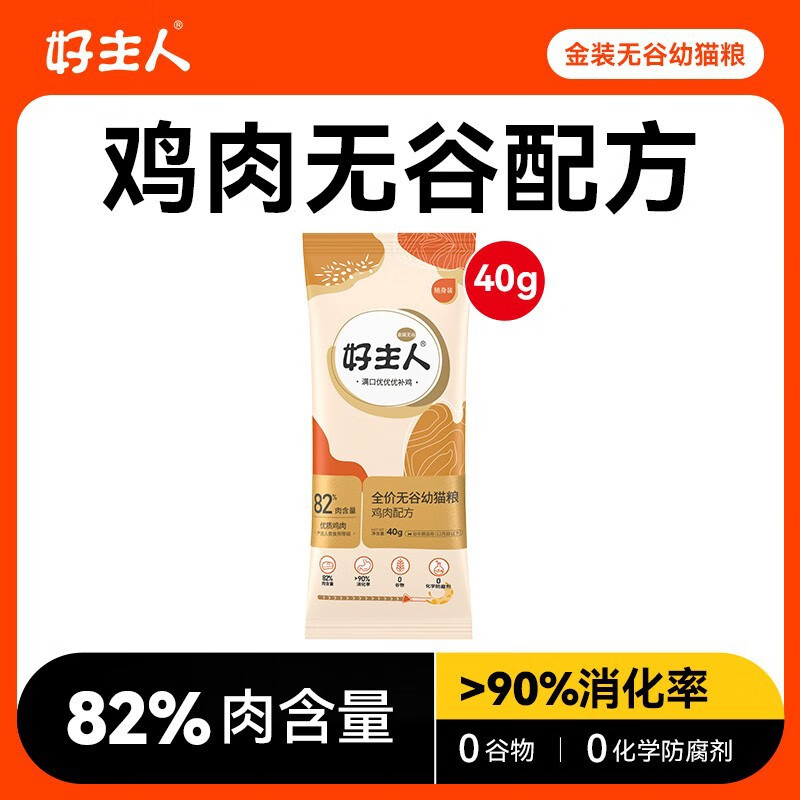 好主人金装全价无谷成猫幼猫粮随身携带试用试吃装小包40克 无谷成猫 100小袋(8斤)