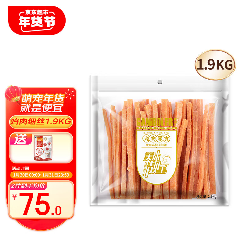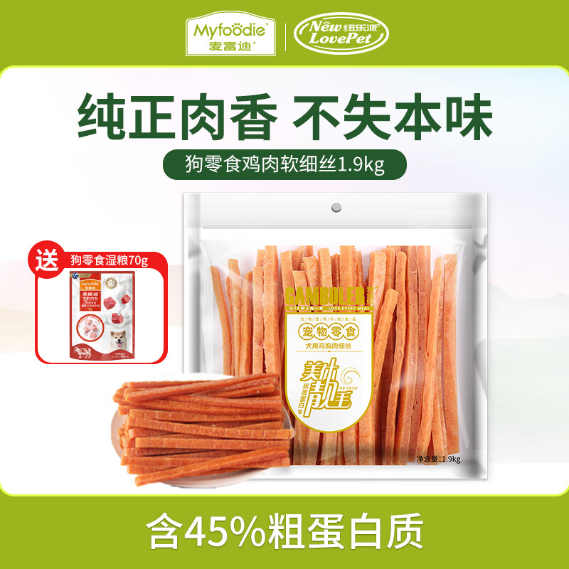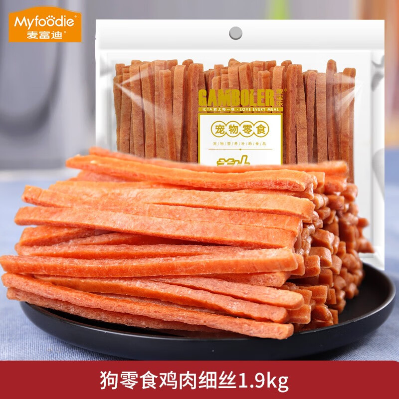 麦富迪狗零食 鸡胸肉干大包装宠物训练奖励零食 鸡肉软细丝1.9kg